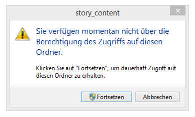 Wir haben einen Lösungsweg gefunden wo kein Windowsuser, und wir sprechen hier von fast 90% die Windows einsetzen, Zugriff auf diese Ordner hat. Beim Versuch erscheint auf einem WIndows 8.1 PC diese Meldung: